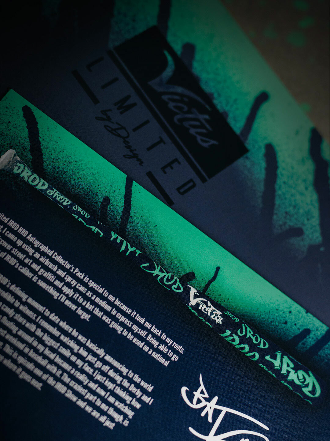 Our talented design team was responsible for bringing the vision to life, crafting everything from the Collector’s Box to the Artist Card and Authenticity Card. The design of the Collector’s Box was inspired by the graffiti design of the bat, and our team worked tirelessly to ensure that the packaging reflected the unique style and personality of Julio Rodriguez.